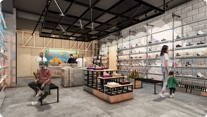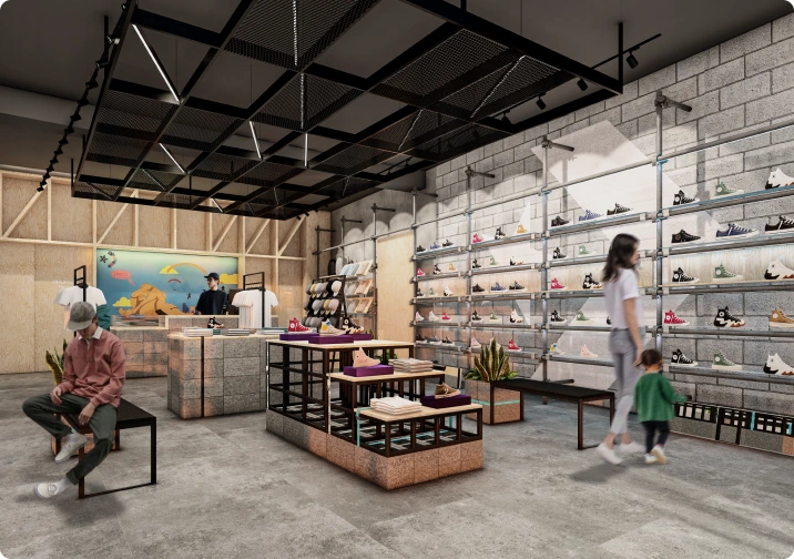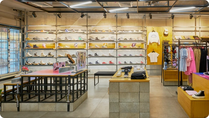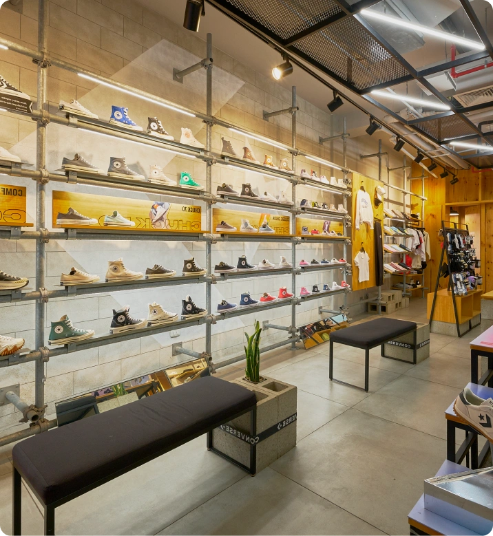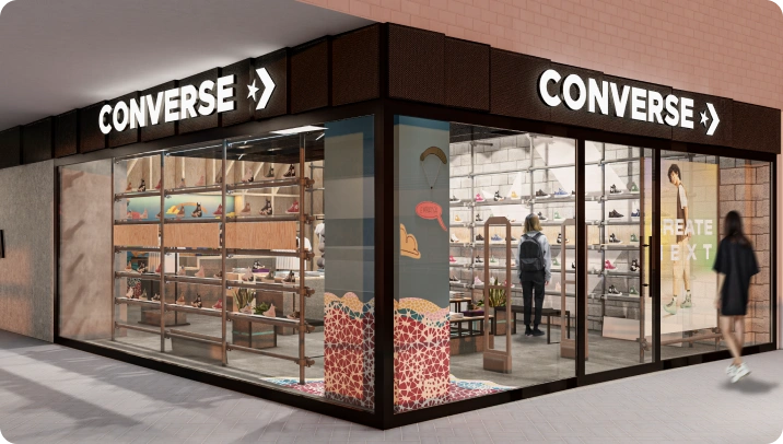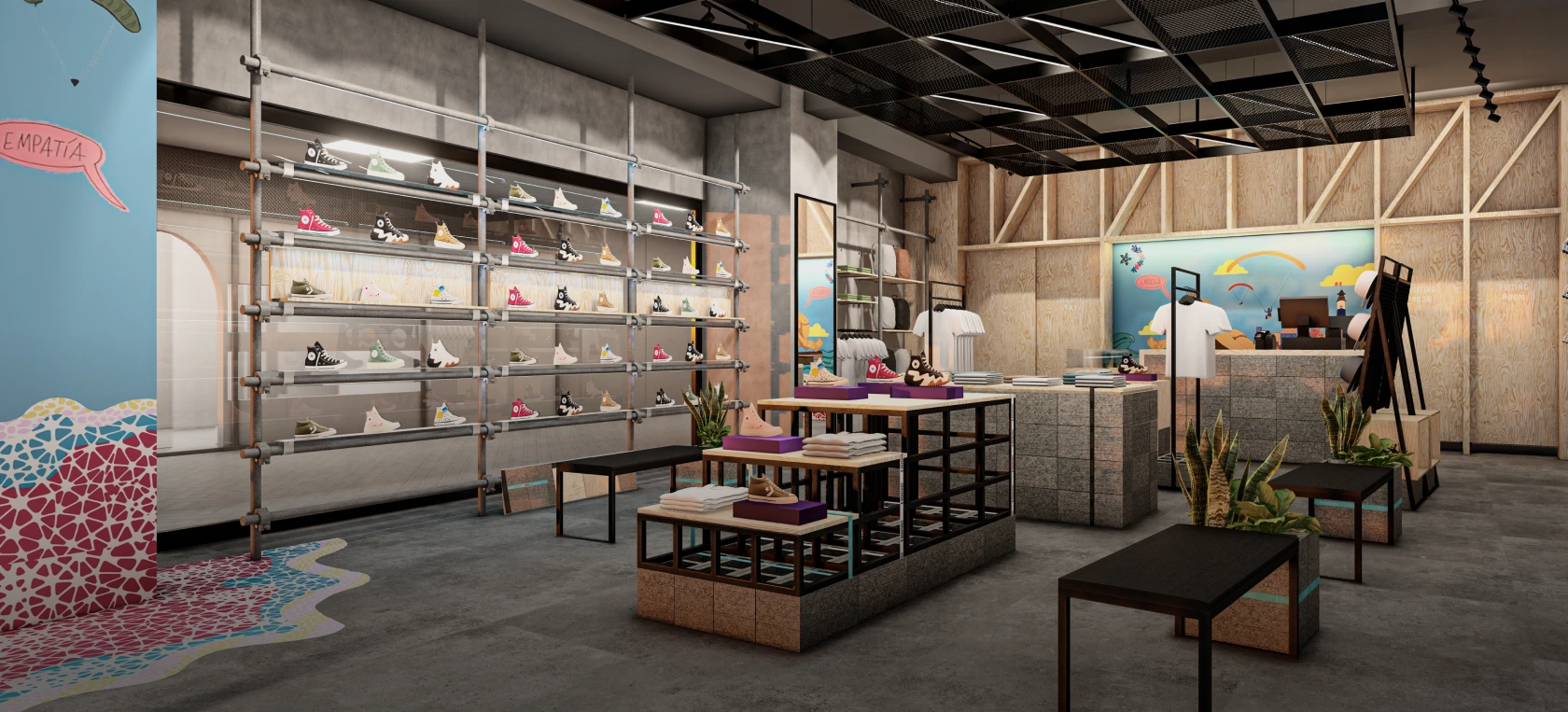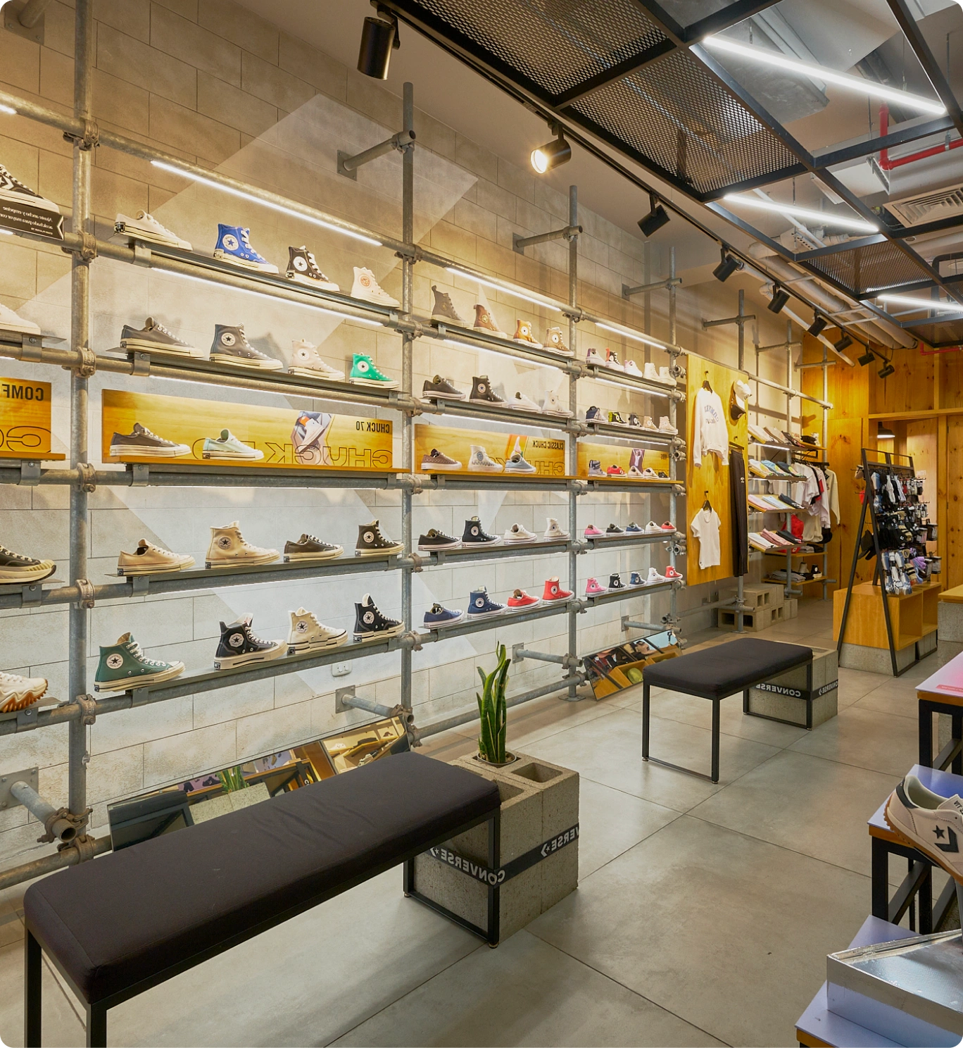 Converse x Modulor: The iconic American brand, operating in Peru for several years, launched its new Tier 1 concept—the brand’s premium offering already present in multiple countries. Converse entrusted us with bringing this vision to life for their new store in Larcomar.