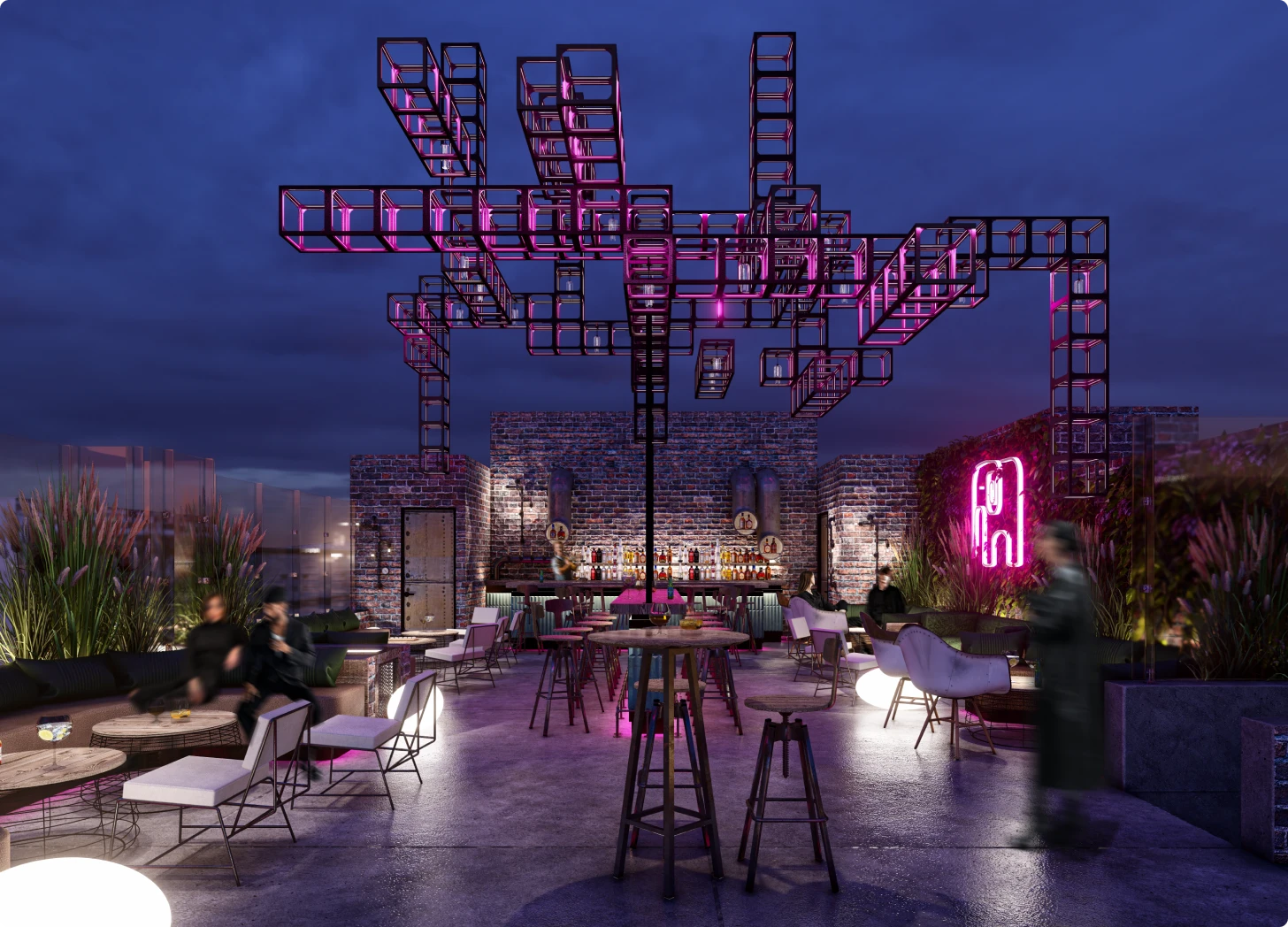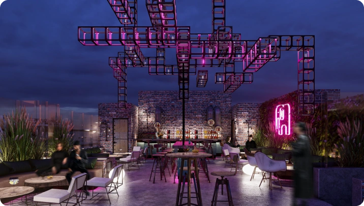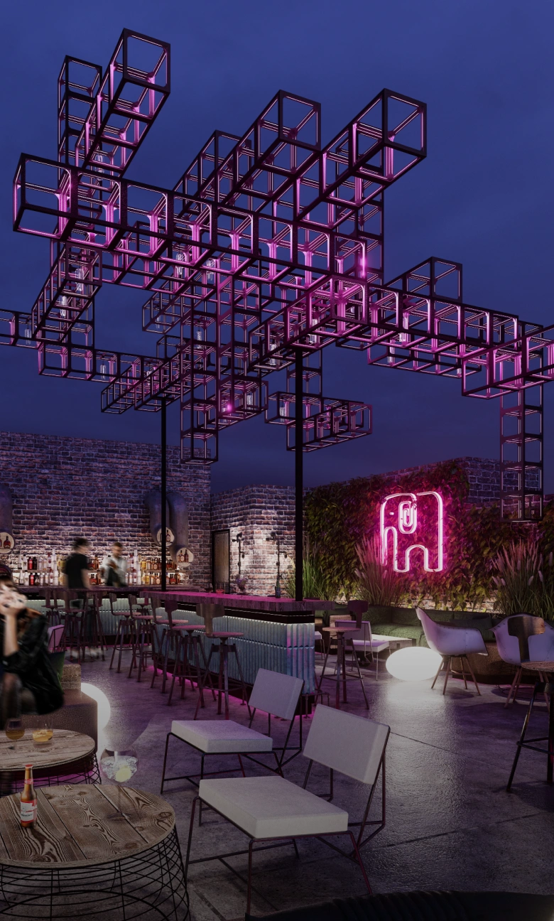 Elephant has successfully positioned itself among the variety of bars on Boulevard San Ramón. It is recognized for its design and disruptive elements, which are visible from the beginning of the street thanks to specially designed lighting. They are carefully placed to guide visitors toward the bar, creating an intriguing and attractive atmosphere.