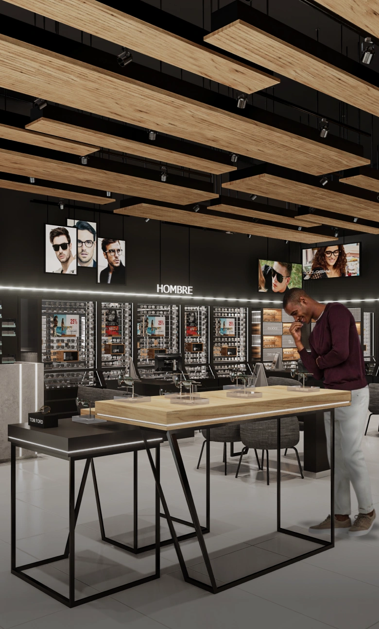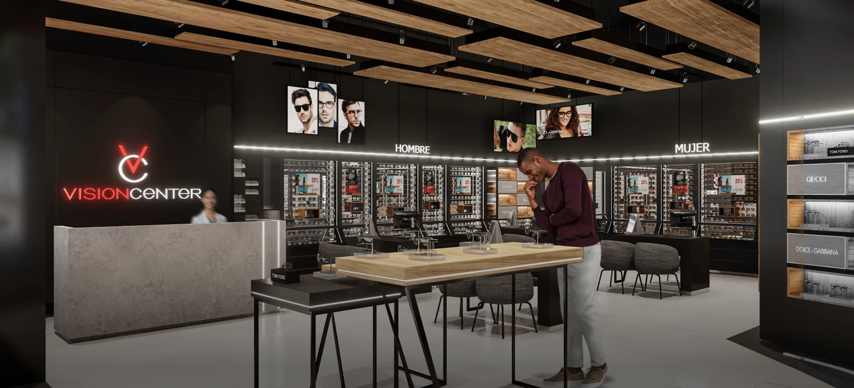 Vision Center, a leading optics retailer in Peru, sought a new brand concept and spatial design aimed at attracting new audiences while maintaining familiarity for its existing clientele.