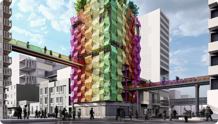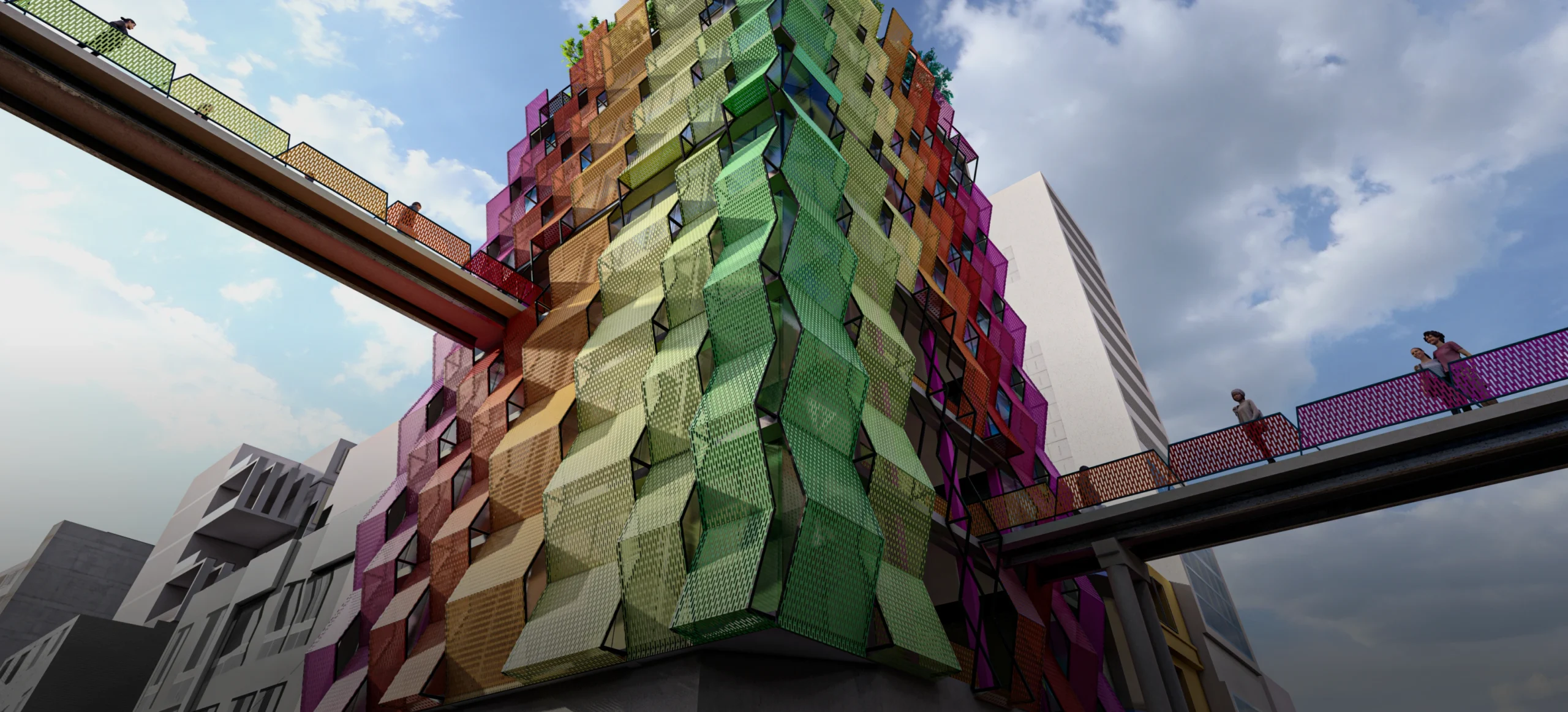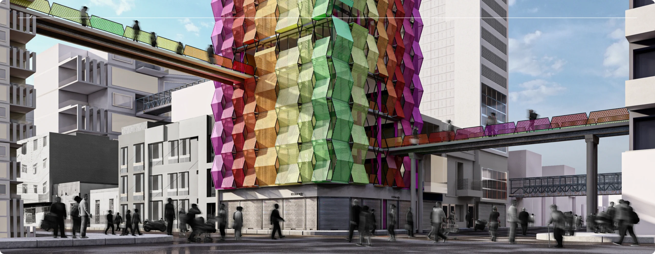 El objetivo del proyecto es revitalizar un edificio ubicado en una concurrida zona comercial de ropa y textiles. La propuesta, incluye repotenciar el valor comercial del área, aumentar la circulación de clientes y mejorar el margen comercial. Además, se busca optimizar el programa arquitectónico del espacio y la circulación interna, así como generar una propuesta que impacte positivamente en el entorno urbano.