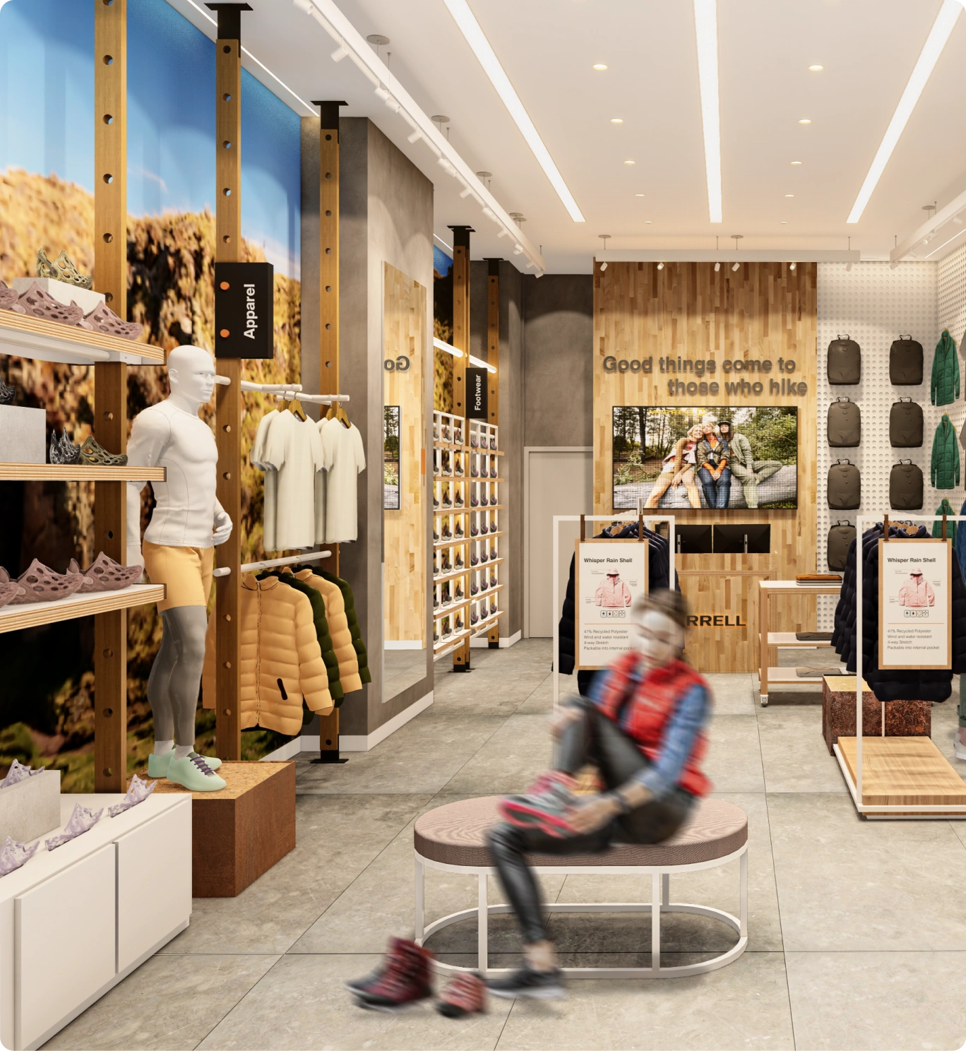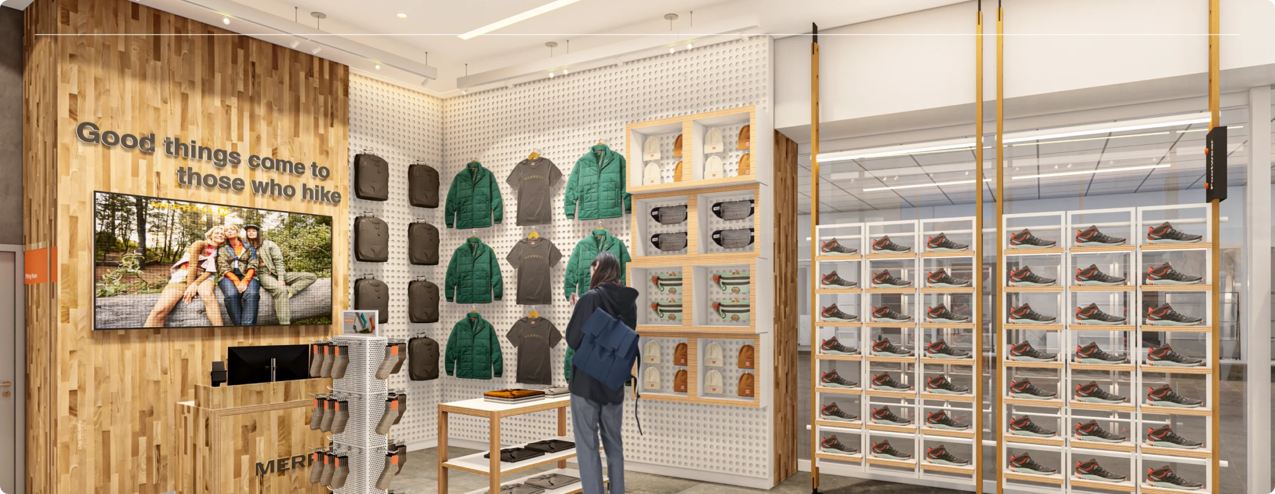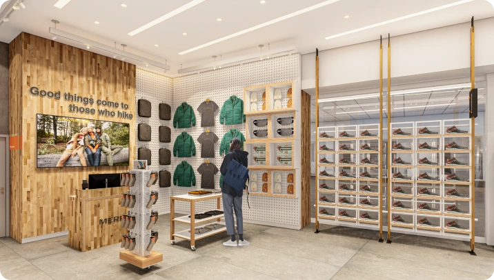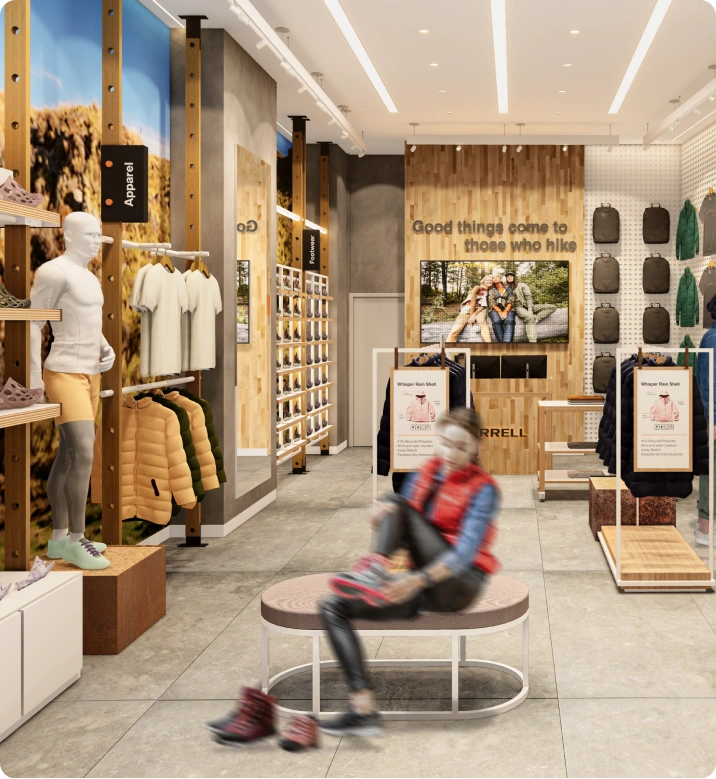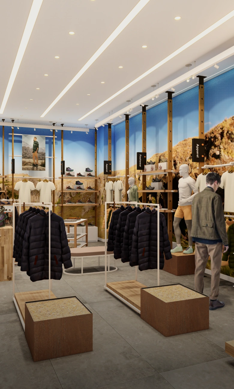 Capturar y plasmar fielmente la identidad de la marca en cada nueva tienda, asegurando que todas reflejaran la esencia y valores de Merrell, independientemente de su ubicación.