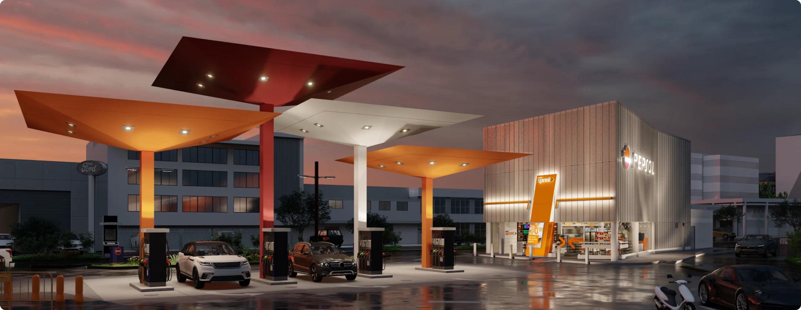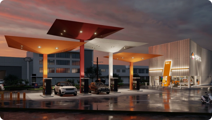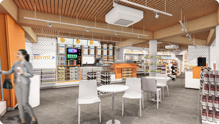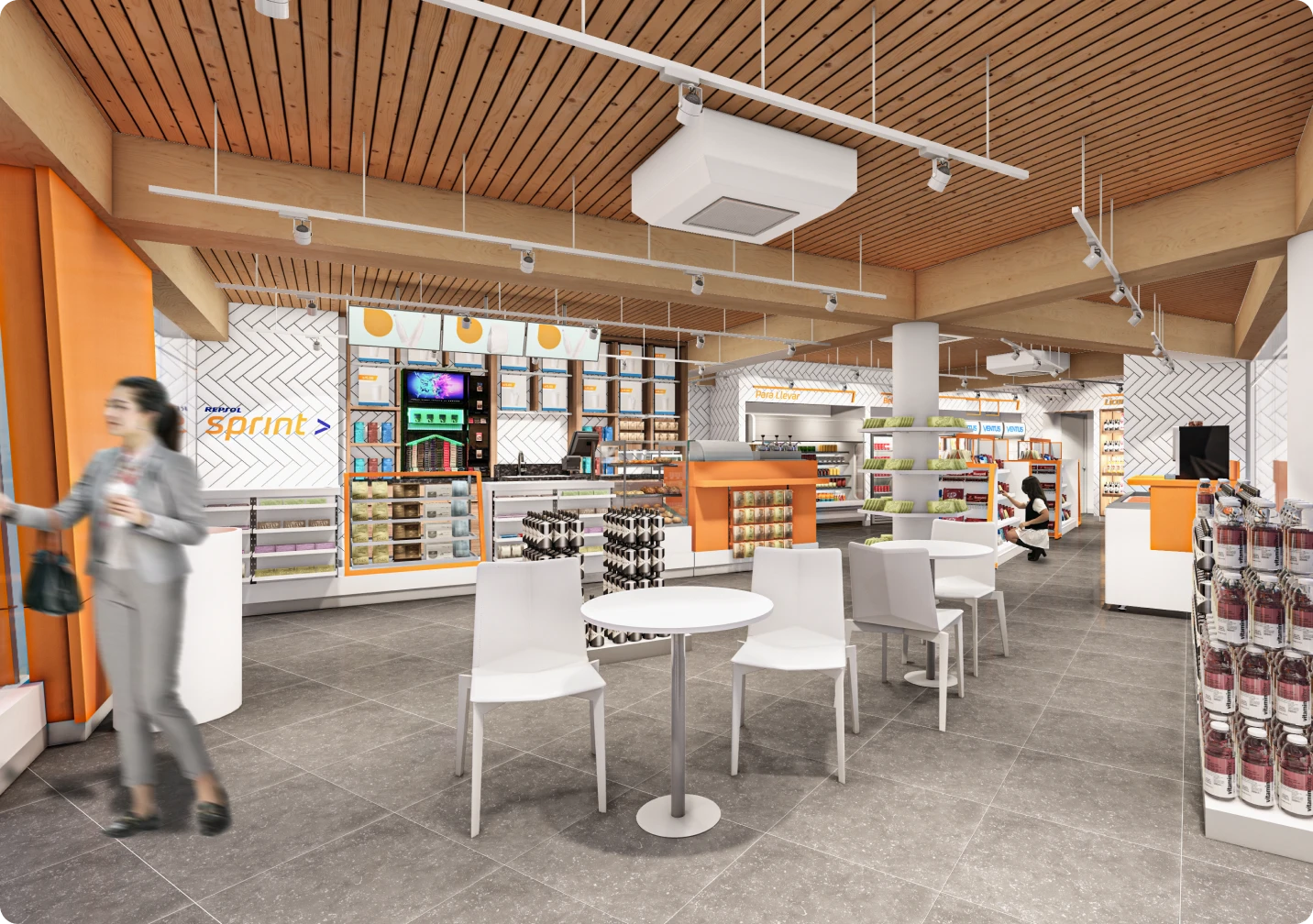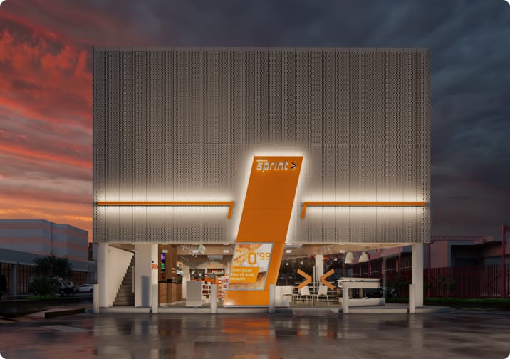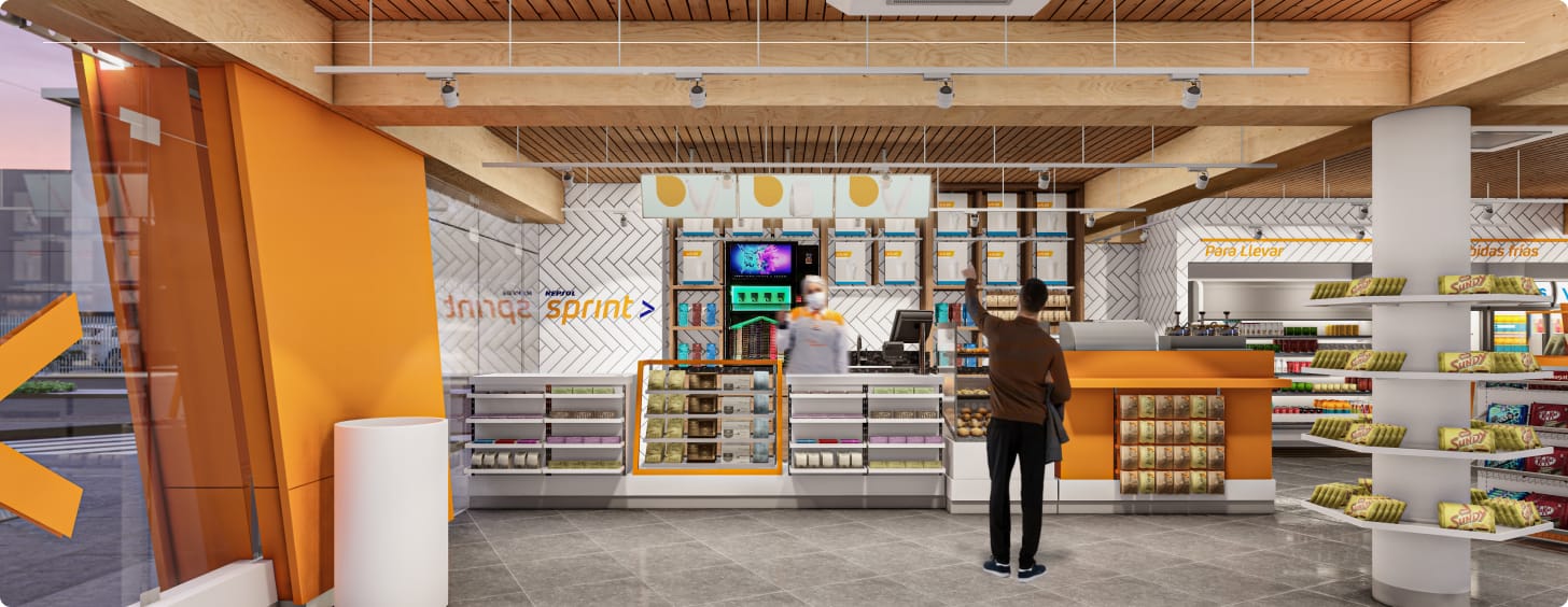 Traducir el nuevo concepto Sprint en un lenguaje arquitectónico replicable en múltiples formatos y ubicaciones, desde estaciones urbanas hasta paradas en carretera, con soluciones diferenciadas según el tipo de punto de venta. Todo esto sin perder de vista la identidad visual, la experiencia del cliente y los lineamientos globales de la marca.