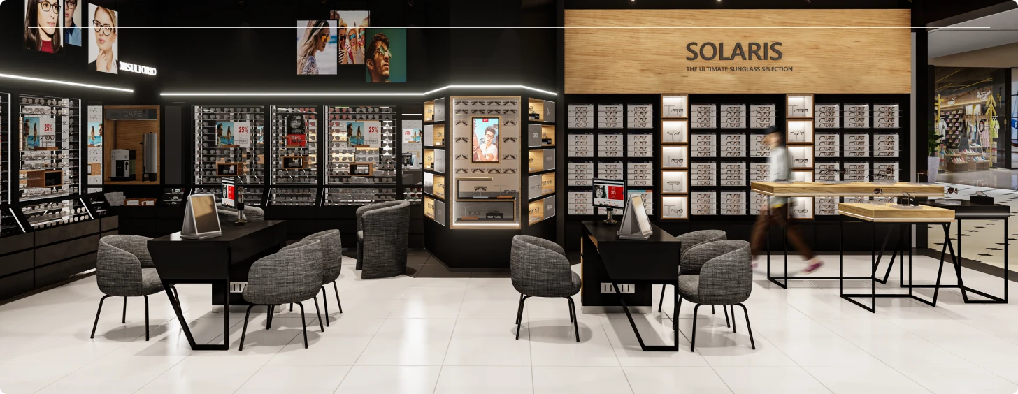 Visión Center, líder en artículos de óptica en Perú, solicitó un nuevo concepto de marca y diseño espacial que atrajera a nuevos públicos sin perder familiaridad con los clientes existentes.